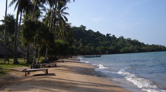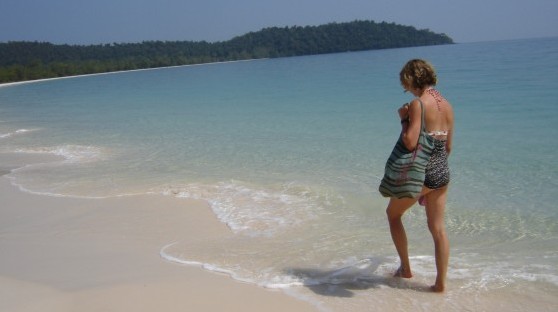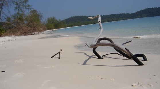 To get to our next island, we had to go to the beach resort of Sihanoukville. A straight-talkin Texan expat on the bus had told us in no uncertain terms, “Don’t go there, it’s a s*thole”, so we were expecting the worst, and our expectations were duly rewarded. Us backpackers have a tendency to feel rather virtuously like we are the best type of traveler – hanging out with the locals and putting our pennies were they are most needed, ‘keeping it real’, and turning up our sunburnt noses at the package tourists hiding safely in their resorts. But Sihanoukville is what happens when a backpacker hangout goes too far. A scruffy strip of beach is wall to wall bars, with tourists in various states of disarray sprawled across them, swilling cheap beer and smoking themselves into oblivion. Marijuana is freely available, which is harmless enough – after all, stoned people are far more likely to sit around discussing their new found perspective on life (man) than starting a fight. But there is a dark side. If you decline the tuk tuk driver’s offer of weed, they then try and tempt you with the harder stuff – one guy who misunderstood our question about a guesthouse thought we wanted to buy heroin, and told us to come back in 20 minutes. Our first impression when we stepped onto the beach was a woman in her mid 40’s with her clothes almost falling off and her eyes practically crossed, looking like she hadn’t showered in weeks and staggering out of a bar at 2pm about to collapse. There’s even a bar which offers you free accommodation if you drink so much you can’t remember where you’re hotel is. It’s almost embarrassing to be a Westerner here – you wonder what the locals think of all this debauchery, as they never seem to want to get involved. After a sleepless night (our room was practically in a bar – if I have to hear another Cambodian version of an Akon track again I may scream), we were out of there on a boat to paradise number two at 6am the next morning.