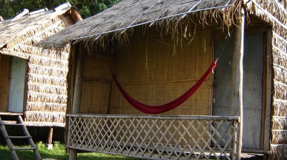 Leggy palm trees strutted their stuff along the shore with a row of bamboo huts behind, each with a hammock smiling in the doorway.