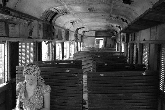 Gett ing around in Vietnam is stupidly easy. Around the main backpacker areas are numerous mini travel agencies selling tours, bus tickets, plane tickets and sorting out visas. This is a cheap and easy way to travel and to meet like-minded traveller types. The problem is, although massively convenient, it does take the adventure out of travelling somewhat. Plus – are we hear to meet people who live round the corner from us back in London, or to meet people who we would never meet back home? That old adage about the journey being equally important as the destination certainly rings true when you’ re on the road. So far we’ve made several attempts to make out own way, some more successful than others. Two attempts at paying our way onto cargo boats (the idea of floating along with hundreds of bunches of bananas is too good to be true) have failed, although we’re still determined to do it somewhere. Arriving in Phenom Phen, the capital of Cambodia, we’ d hear d that although there are no longer passenger trains, it might be possible to blag your way onto a cargo train. However, once we arrived at the station, it quickly became apparent that no train had left from this station for a long time. A few bodies snored peacefully in the main concourse, ticket desks remained sealed and weeds grew thick over the tracks. We couldn’t resist having a poke around – Timur’s shots below give a glimpse of what must have been a once glorious rail system. Just don’ t call us trainspotters, OK?