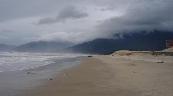 The quest for an empty beach led us to the middle of the road - why Lang Co is not for backpackers.